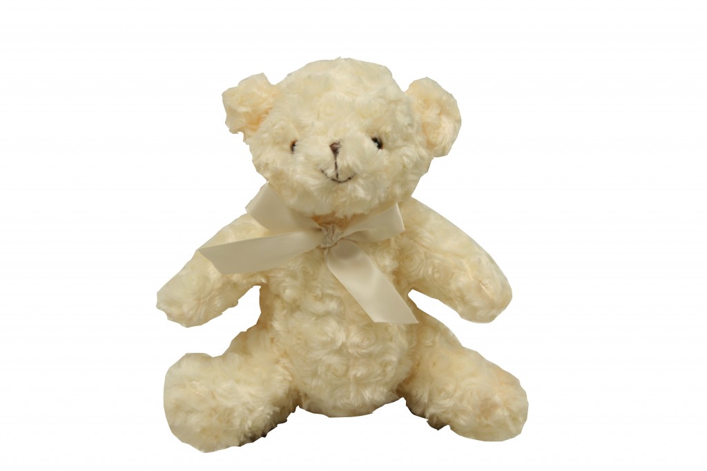 Bear plush toy in light color made of soft plush with strong stitching and durable filling. It has a bow detail. Ideal as a gift for the little ones in the house such as newborns or older ones. It can be given as a gift for baptisms, birthdays, etc.