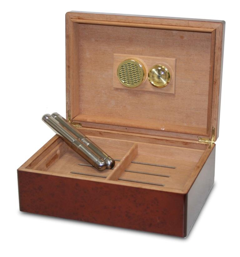 Cette boîte en bois est très résistante et de grande qualité. Il dispose d'un humidificateur pour que les cigares ne se dessèchent pas et d'un hygromètre pour mesurer l'humidité à l'intérieur, ce qui en fait un produit très complet.