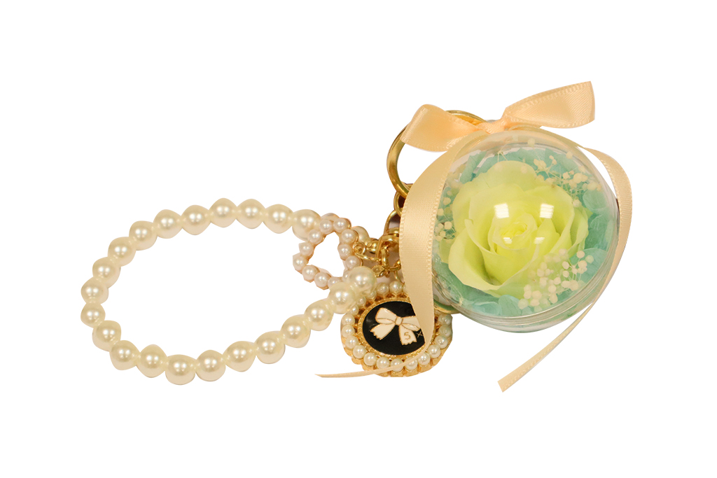Ce porte-clés avec une rose éternelle jaune est l'accessoire parfait pour emporter un symbole d'amour et de beauté intemporelle. La rose préservée dans une sphère transparente évoque l'élégance et l’éternité, avec des détails dorés et un joli nœud raffiné.