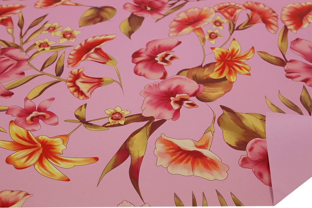 Le rouleau de papier double face lilas avec motif de fleurs réelles est idéal pour un emballage élégant et coloré. Son imprimé floral aux tons vifs apporte fraîcheur et raffinement, tandis que le verso lilas intense crée un contraste moderne et attrayant.