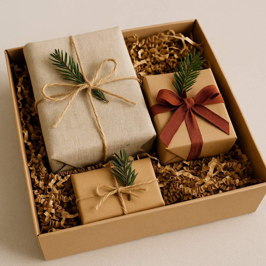 Las cajas de cartón decorativas o de madera natural son la base perfecta para presentar tus regalos. Además de prácticas, aportan estética y sostenibilidad.