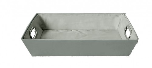 Bandeja de tela gruesa en color blanco y por dentro forrada a juego del mismo color, con dos asas para sujetar. Esta disponible en en otros diseños