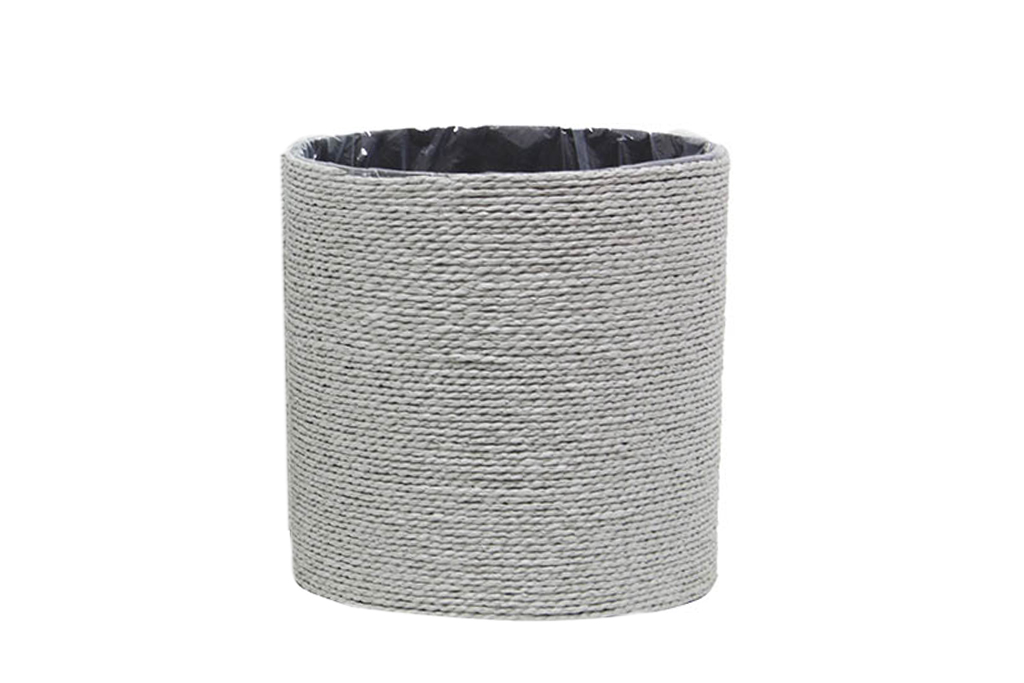 Cesta redonda de papel en color gris. Perfecto para usar en el baño y colocar accesorios.
