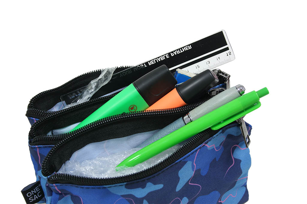 Practico estuche con dos compartimentos con cierre de cremallera para poder distribuir el material de escritura de manera ordenada.