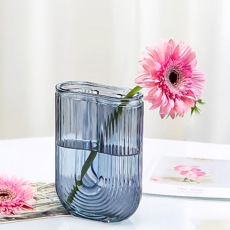 El jarrón de cristal acanalado gris es una pieza que combina diseño y elegancia para realzar la belleza de cualquier flor. Su forma original, con curvas en la base y un sutil tono gris ahumado, aporta sofisticación sin perder la esencia minimalista. Las líneas acanaladas en su superficie reflejan la luz de forma delicada, creando un efecto visual que llena de vida cualquier rincón.