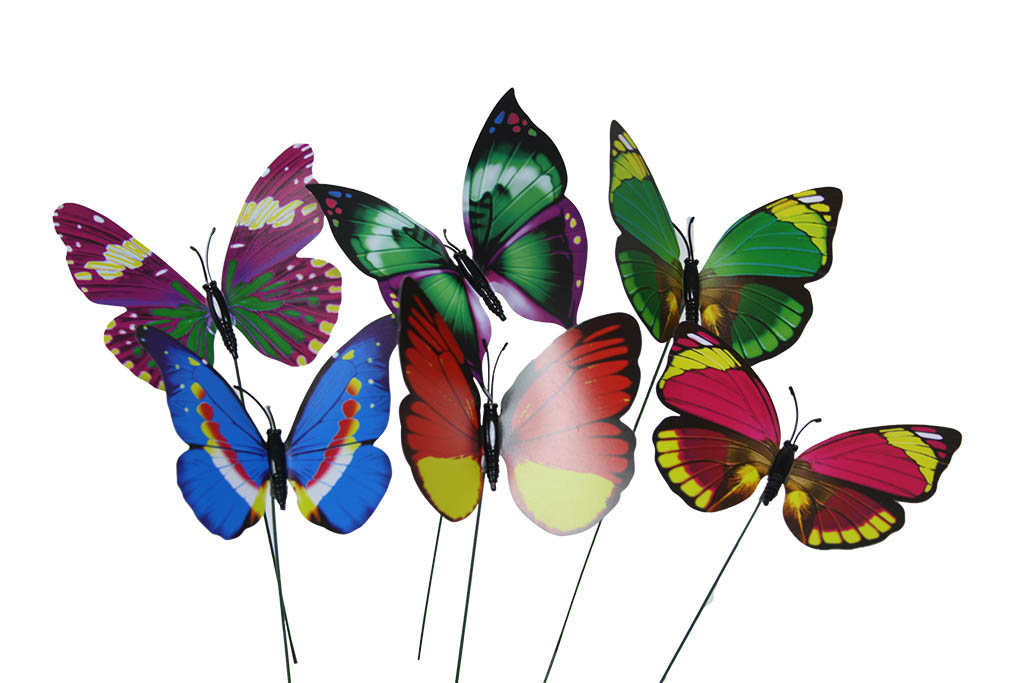 Sticks de madera con forma de mariposas con dsitintos diseños, pensado para la decoración de las plantas tanto en interior como en exterior.