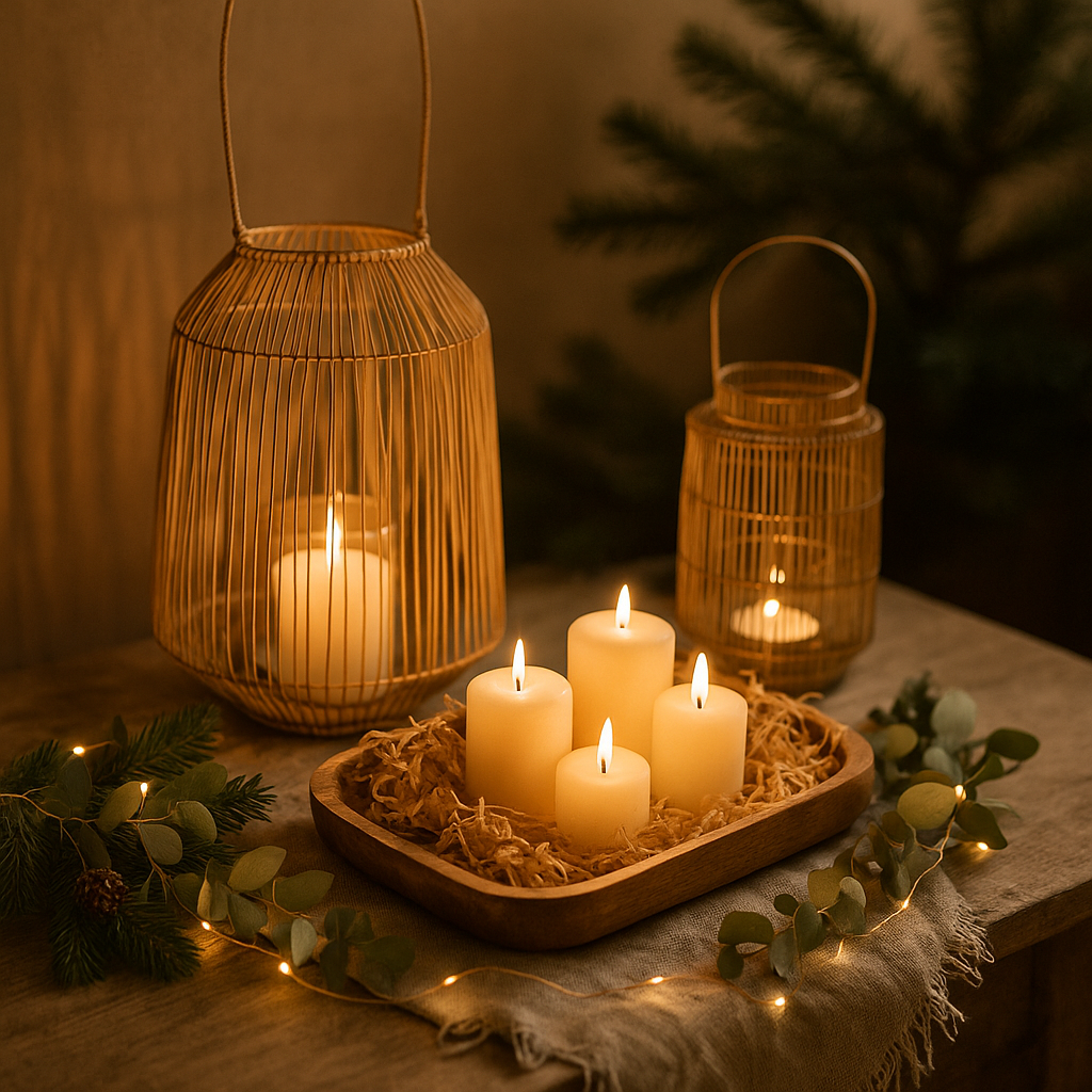 La Navidad más bonita es la que se siente, no la que brilla sin medida. Con velas, farolillos y mimbre, puedes transformar tu hogar en un refugio cálido y acogedor, lleno de luz suave, aromas naturales y una belleza sencilla.